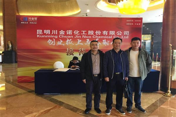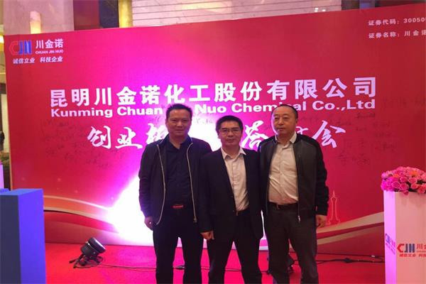 2016年10月31日晚,“昆明川金諾化工股份有限公司2016年上市答謝會暨M(jìn)DCP新產(chǎn)品推薦會”在世紀(jì)金源大飯店一樓宴會廳隆重舉行,我司李宏斌總經(jīng)理、何志強(qiáng)經(jīng)理、姚勇經(jīng)理參加會議。